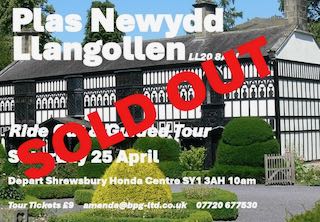 Amanda has organised a ride out into Wales, starting at the Honda Centre in Shrewsbury with a guided tour of Plas Newydd, Llangollen on the 25th April. Tickets for the tour are now sold out but you are welcome to join the rideout to Plas Newydd which goes via The Lost Barn Cafe and Ruthin before reaching Plas Newydd where you can sit and have refreshments (The cakes are very good) while the tour takes place. Please contact Amanda if you would like to attend on [email protected]