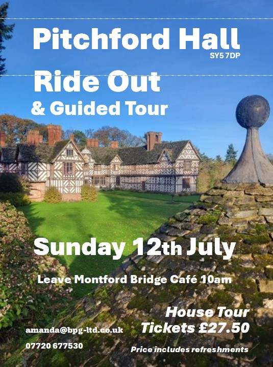 A rideout and visit to Pitchford Hall on the 12th July. Cost £27.50