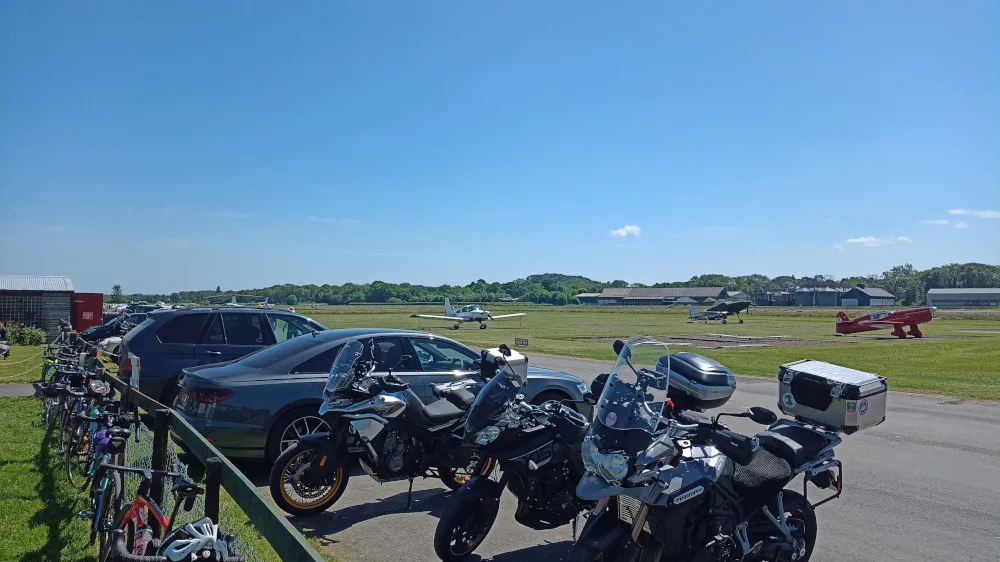 Around 12 bikes met at Montford bridge on Sunday 4 August. We started out at 9:30-ish following a pre-ride briefing ride that Nigel Bright has kindly helped me out with. From A5, we took the A488 towards Bishop’s Castle, navigated the twists and took a picturesque B4385 road towards Montgomery. From A483 Newtown Bypass, we proceeded left towards the mountains, where we were greeted by some interesting bends (one of them containing wood debris in the middle). We stopped as planned in Beguildy, where we managed to create a queue at the local post office – fortunately, everyone got their coffees in the end. After that we headed towards Knighton, then A49 in the direction to Ludlow. We did not stop in Ludlow as previously planned, as I decided that trying to find a parking space was going to be a challenge. Instead, we left A49 into A4117 towards Clee Hill, with its panoramic view. The road took us to Kinlet, where we had a lunch break in Kinlet Kabin cafe. After we set off along another twisty road, we had a slight incident with marking, due to which some of us missed a left turn bypassing Bridgnorth resulting in the group briefly falling apart. Fortunately, we all met together on A458 and proceeded towards the Dobbies roundabout, where the ride ended.